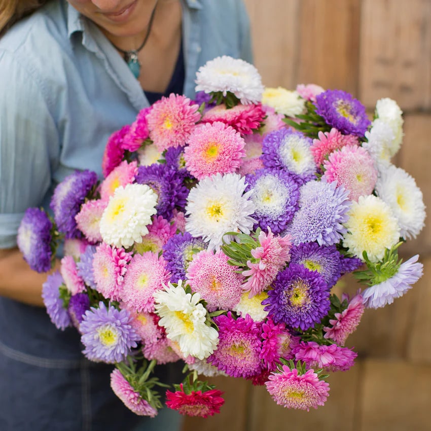 Estas sementes de áster chinês foram fáceis de germinar e cultivar. Deram um toque encantador aos meus canteiros. Só não se esqueça de dar-lhes bastante luz solar!