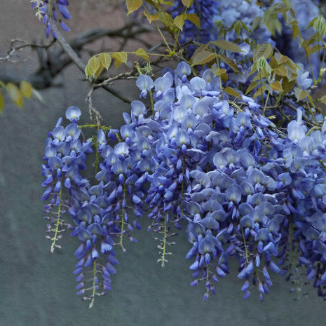Produz longos cachos em cascata de flores azul-violeta perfumadas que criam um espetáculo de tirar o fôlego a cada primavera.
