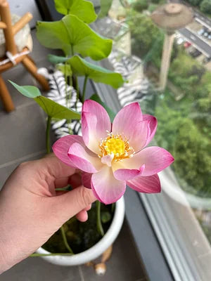 Com certeza! Use um recipiente largo e fundo com água parada e solo rico, e sua flor de lótus poderá prosperar em uma varanda ou pátio ensolarado.
