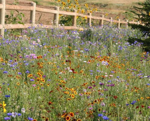 Produz uma mistura impressionante de flores silvestres em tons vibrantes, criando um jardim natural e colorido.