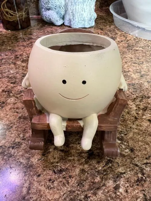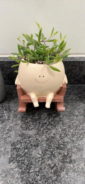 I planted a small succulent in this pot, and it looks amazing. The rocking chair design is very unique, but I wish it came in more color options.
