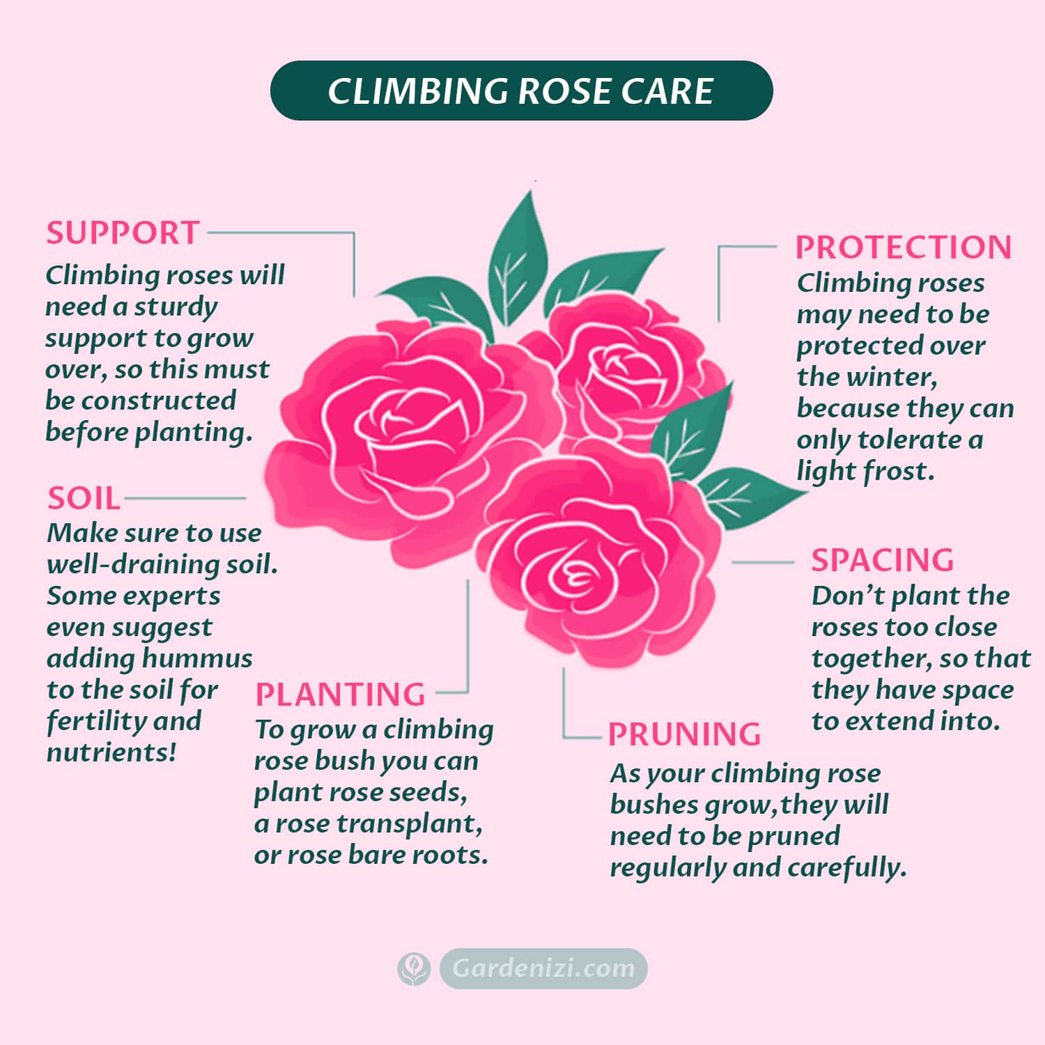 As roseiras trepadeiras preferem solo bem drenado e prosperam em uma variedade de tipos de solo, mas se desenvolvem melhor em solo rico e argiloso. Certifique-se de que recebam sol pleno por pelo menos 6 horas por dia. Evite regar em excesso, pois isso pode causar apodrecimento das raízes.