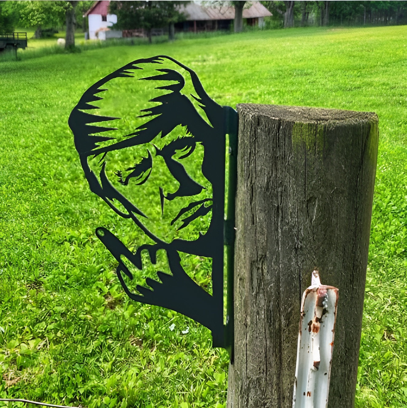 Coloquei o Trump na minha cerca e todos os visitantes se divertem muito com ele. O metal é resistente e o recorte é super limpo. É fácil de instalar e dá muita personalidade ao meu jardim!